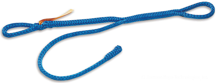 Adjustable, load-rated two-eye lifting slings. The sling has a permanent eye splice at one end, and an adjustable eye at the other end that allows it to adapt to loads of various sizes. The adjustment allows snug lifting control and minimizes the